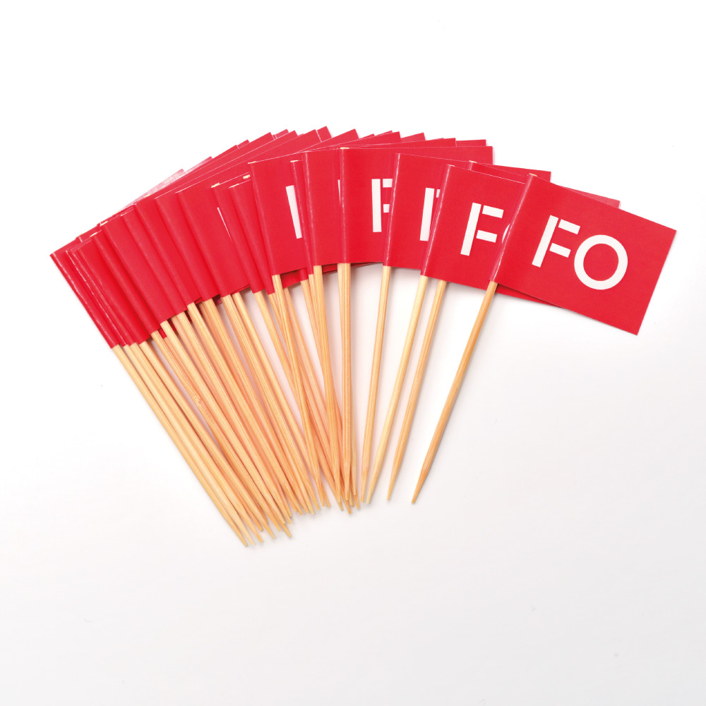 Flaggene selges i poser med 50 stk. og er 85 mm høye.
